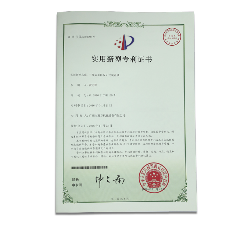 非標(biāo)定制自動化包裝生產(chǎn)線證書