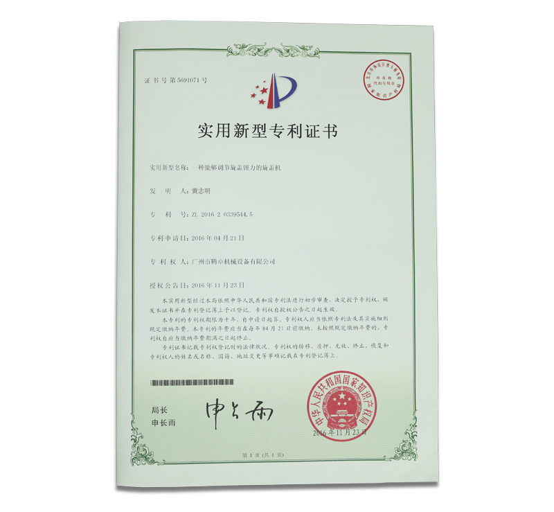 騰卓機械專利生產(chǎn)證書,專業(yè)制造包裝設(shè)備的生產(chǎn)廠家,全自動及半自動的洗瓶機,烘干機,灌裝機,旋蓋機,貼標機,套標機,打碼機等非標定制自動化包裝生產(chǎn)線